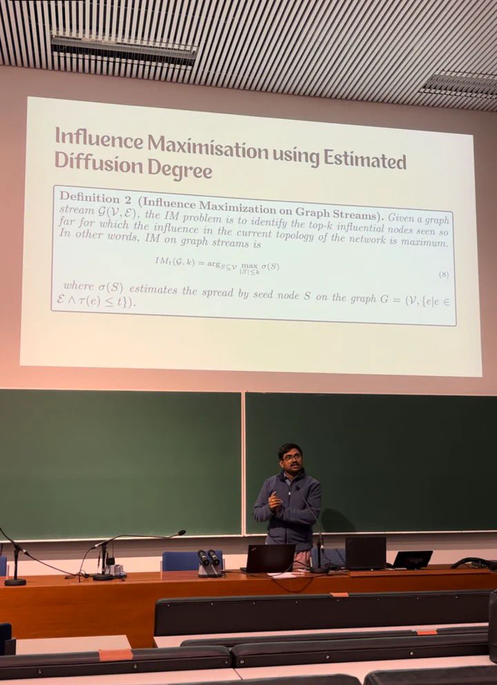 Data stream generated from different Web 2.0 applications may contains data which is best described by graphs. Graph streams thus generated show big data characters, including volume and velocity. The challenges of graph stream algorithms are twofold; each edge needs to be processed only once (due to velocity), and it needs to work on highly constrained memory (due to volume). Diffusion degree, a measure of node centrality, can be calculated for static graphs using a single Breadth-First Search (BFS). However, tracking Diffusion Degree in a graph stream is nontrivial. This paper proposes an estimator for diffusion degree for graph streams, which can be used to extract top-$k$ influencing nodes for viral marketing in social networks. Comparative experiments show that the proposed graph stream algorithm is equivalent to or better than the exact diffusion degree-based algorithm.